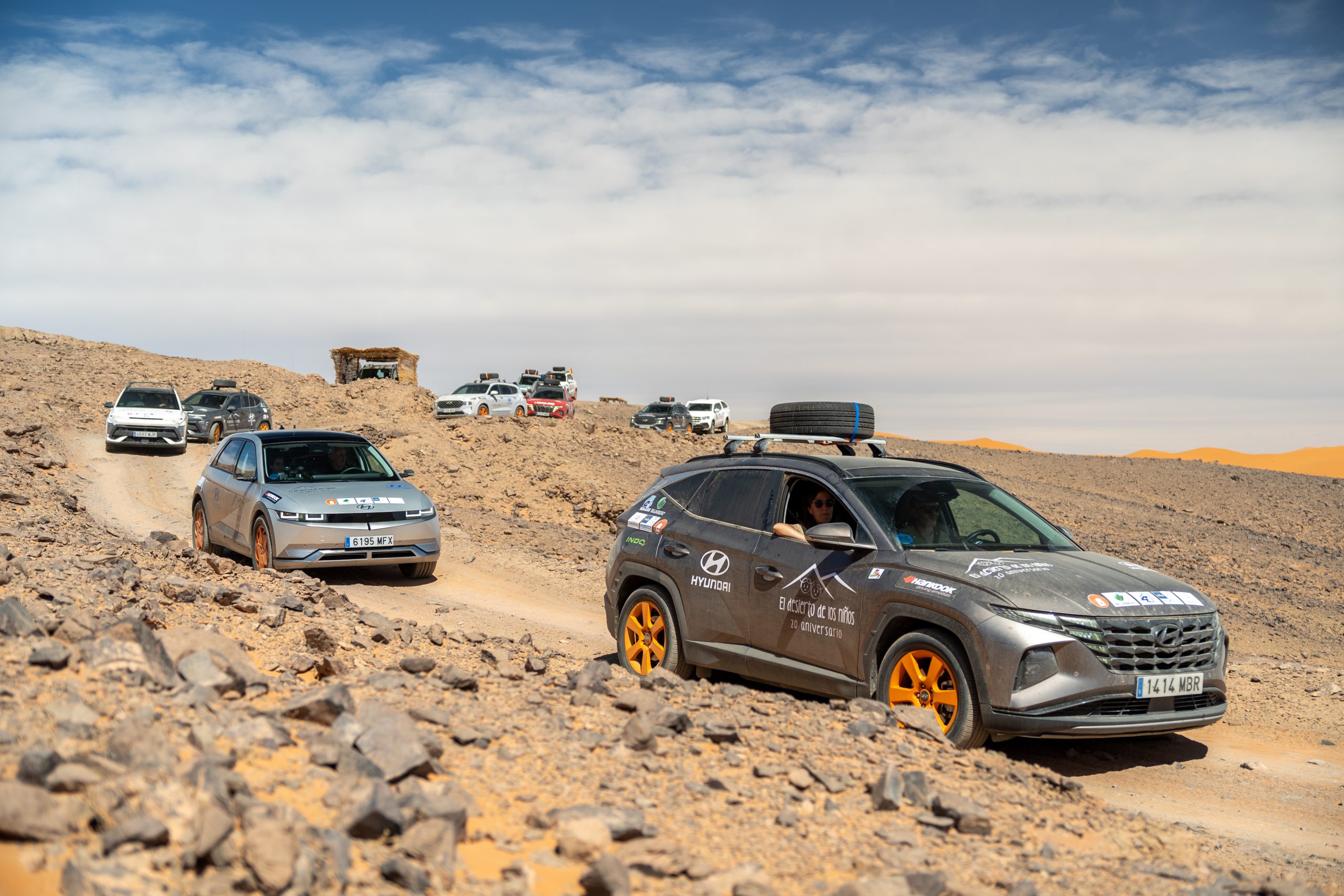 Aún con unas complicaciones añadidas por una climatología adversa, los vehículos Hyundai encabezados por el Ioniq5 ha vuelto a encabezar con éxito la caravana en la que había representación de toda la gama 4×4 de la marca, destacando el debut en el desierto del nuevo Kona, Coche del Año en España 2024, del que han participado varias unidades, junto al resto de vehículos 4×4 de Hyundai, el Staria, el Tucson y el Santa Fe, que se han movido como pez por el agua por las carreteras y pistas del sur marroquí equipados con neumáticos Hankook Dynapro HP2. Esperamos cumplir otros 20 años colaborando con El Desierto de los Niños junto con la Fundación Alain Afflelou, Bujarkay y Hankook colaborando en el desarrollo de los pueblos más desfavorecidos del pueblo marroquí” comentó Leopoldo Satrústegui, Presidente y CEO de Hyundai Motor España.