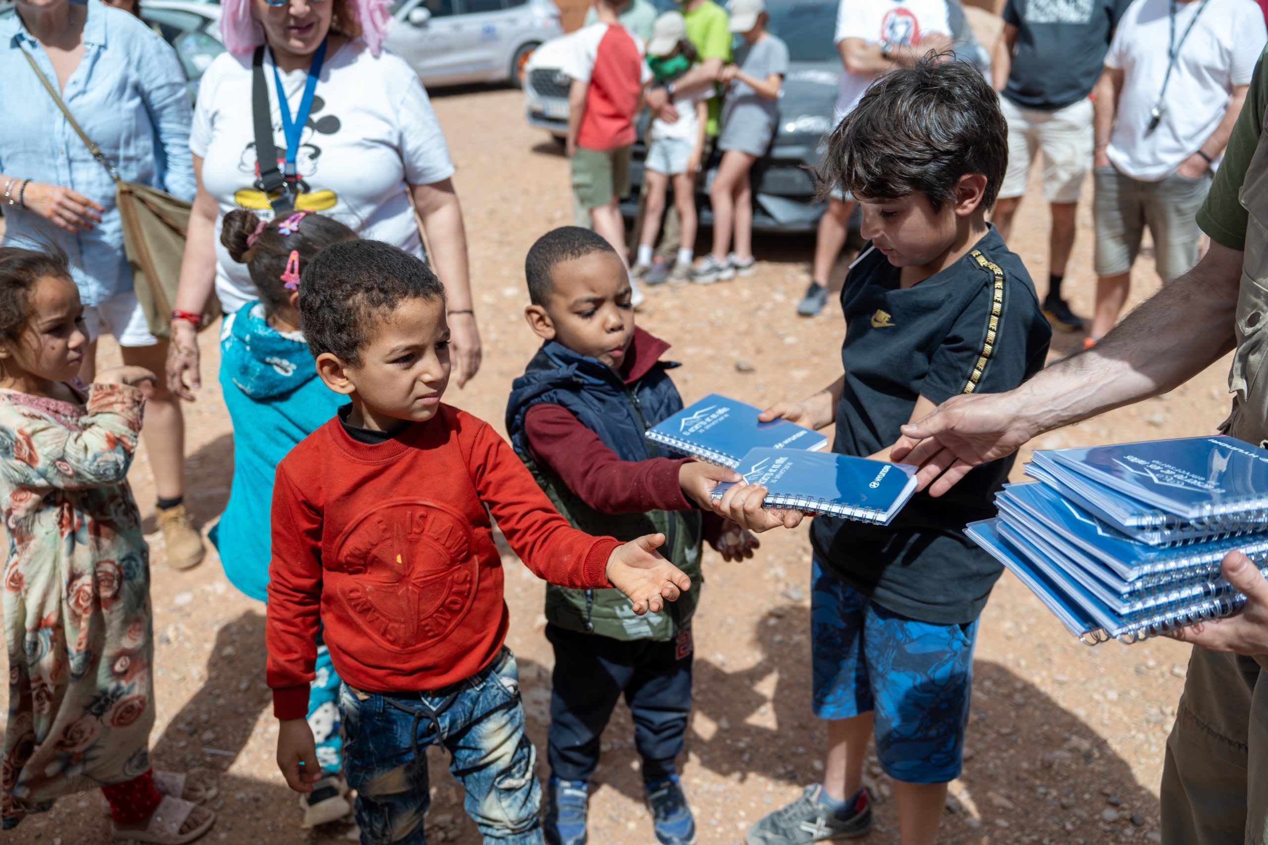En el aspecto solidario, el punto fuerte de la edición 2024 fue la puesta en marcha de las dos bibliotecas donadas por la Red de Concesionarios Hyundai. Una de ellas se montó en la pequeña aldea de Tisserdimine, mientras la segunda era la de Ouzina, punto vital en la historia del viaje al ser la primera población en la que El Desierto de los Niños entregó material escolar hace 20 años. En Ouzina se realizó también una entrega de material de Educación Vial realizado por Cifal Madrid RACE, ya que recientemente uno de los caminos de acceso al pueblo se ha convertido en una carretera. Los carteles, que se distribuirán por las escuelas y asociaciones locales, dan consejos de seguridad vial para que los chavales aprendan a convivir con la nueva carretera y evitar, en la medida de lo posible, atropellos.