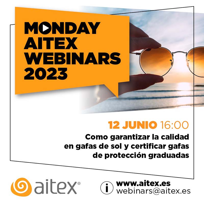 El próximo 12 de junio, en formato webinar, AITEX ha organizado una formación gratuita de una hora, dirigido a profesionales del sector óptico donde se darán a conocer los ensayos que aplican a los protectores oculares y cómo certificar gafas de protección con lentes graduadas. Además de conocer los ensayos que también aplican a las gafas de sol para poder garantizar la calidad y el marcado CE.