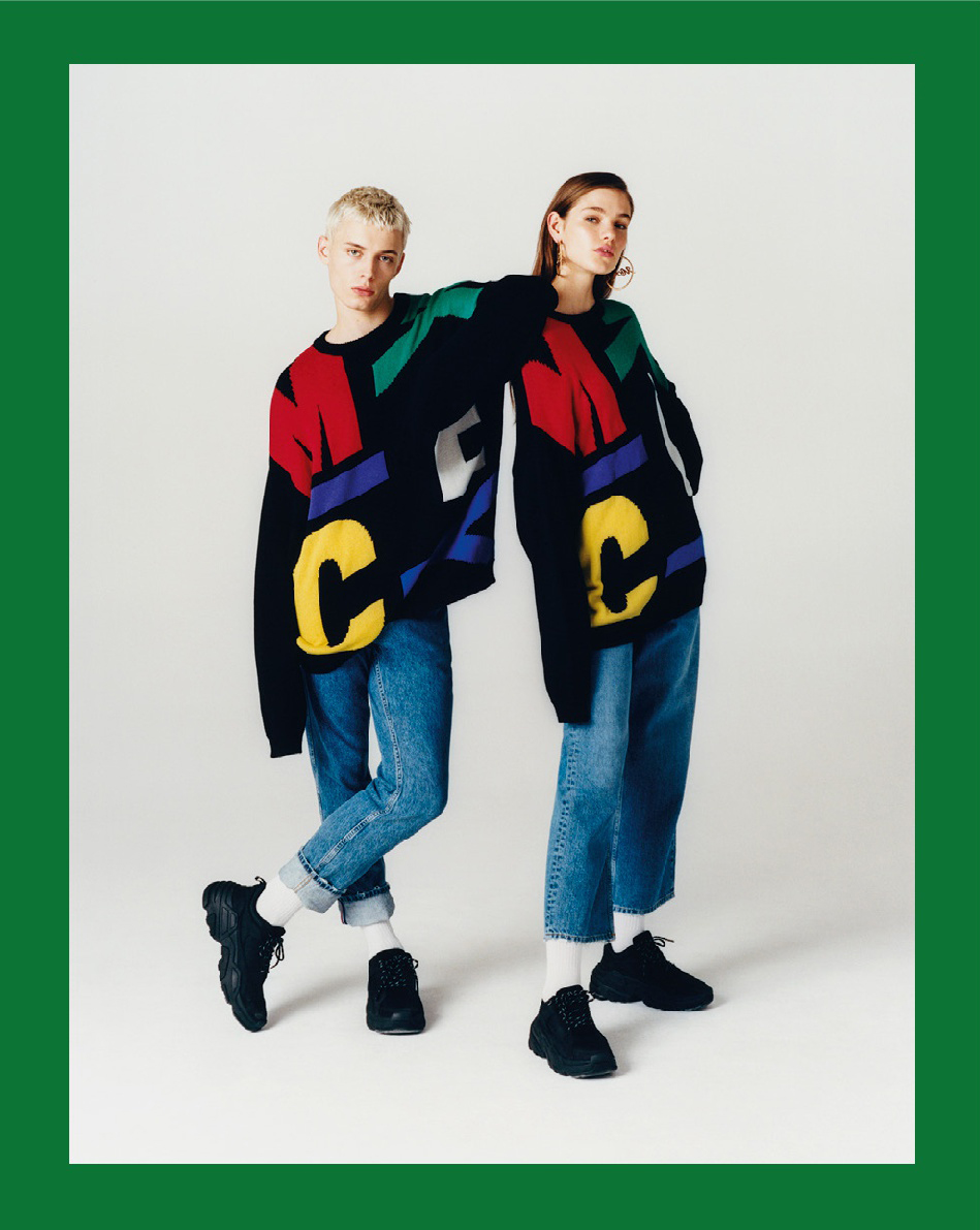 El blanco y negro icónico de Mickey se mezcla con atrevidos toques de color (morado, rojo, amarillo o verde) para crear looks eclécticos y poco convencionales. Las prendas se llenan de logotipos y gráficos, mientras que el nombre de Mickey y las letras M mayúsculas se convierten en llamativos estampados.