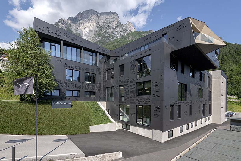 Blackfin celebra 50 años en el sector eyewear y la inauguración de su nueva sede de Black Shelter, un edificio futurista que casi triplica el espacio en la ubicación existente de Taibon Agordino, rodeado por las montañas Belluno Dolomite.