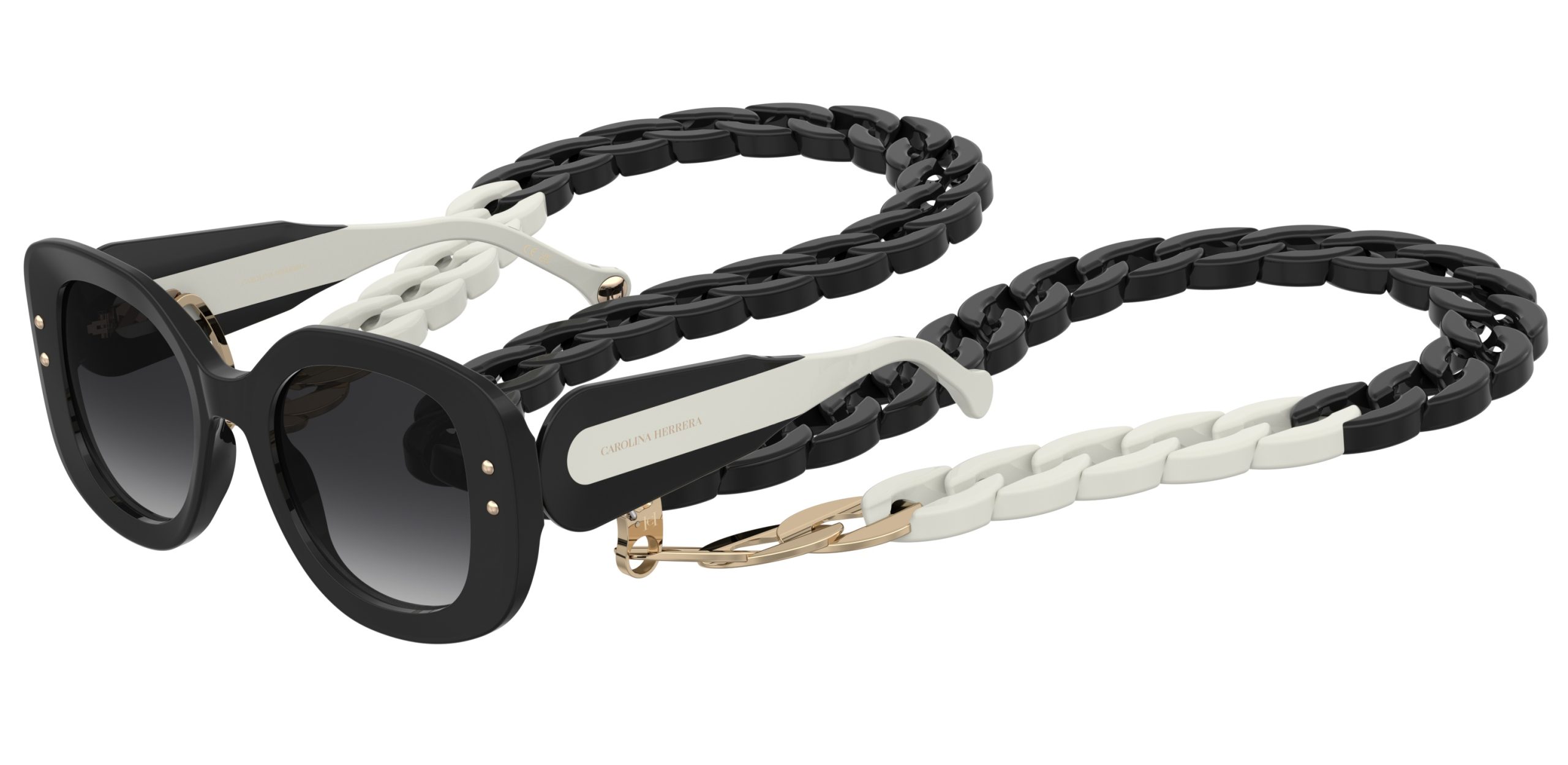 Las gafas de sol presentadas en el desfile, fabricadas y distribuidas por el Grupo Safilo, fascinan por sus formas sofisticadas y detalles exquisitos, como el monograma CH o el delicado lazo metálico, que reflejan la esencia de la marca Carolina Herrera encarnada en una estética femenina y alegre.