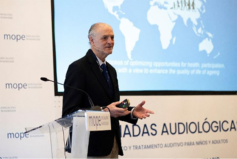 El Dr. D. Manuel Manrique Rodríguez, director del Departamento de ORL y del Programa de Implantes Cocleares de la Clínica Universitaria de Navarra, destacó la importancia de cuidar la Audición y equilibrio para un envejecimiento saludable. La pérdida auditiva, invisible para muchos, es la tercera enfermedad prevalente de las personas mayores de 65 años y su relación con el equilibrio es determinante. Las consecuencias de las caídas son graves en cuanto a la calidad de vida y al impacto sobre el sistema sanitario. Detectar y tratar la pérdida auditiva a edades tempranas reduce el riesgo de caídas y deterioro cognitivo entre otros. El Dr. Manrique nos dio pautas para fomentar el envejecimiento activo en personas con hipoacusia.
