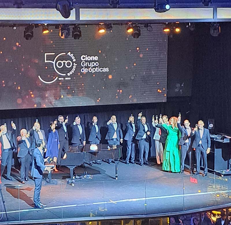 El sector óptico ha celebrado, este pasado sábado 6 de mayo, el cincuenta cumpleaños de Cione Grupo de Ópticas. La cooperativa decana del sector eligió para la ocasión un lugar excepcional, Platea Madrid, a pocos metros de donde nació la cooperativa, en la calle de Alcalá, 23, según dicen sus escrituras, el día 3 de mayo de 1973.