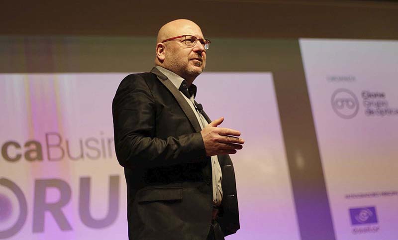 Elvio Reolon, director general de Polar, marca que Cione Grupo de Ópticas distribuye en exclusiva en España, introdujo al tercer ponente, Marc Vidal, que cerraba las sesiones matinales del Forum. Divulgador y analista en nueva economía, consultor en industria 4.0, comentó en su ponencia titulada ‘Reworking’: “Vivimos la cuarta revolución industrial vinculada a la tecnología digital. Para sacar ventaja de ella, para mejorar las competencia y modernización de las empresas debemos conectar de una manera eficaz con el cliente digital; mejorar los procesos, se más eficientes; generar nuevos modelos de negocio; estimular nuevas habilidades que los seres humanos tenemos para convertirlas en un valor añadido en todo aquello que no se pueda digitalizar. La tecnología tiene que ser un cómo; las personas, el porqué. La tecnología siempre ha sido una oportunidad, un mecanismo para mejorar nuestras vidas. Lo fue en el XVIII, lo fue en el XX y lo será el XXI. Es el hilo conductor para que sucedan cosas”, resumió Vidal. Al respecto del proyecto e-Commerce de Cione, el divulgador afirmó que “refleja un hecho que no se puede evitar. Pensar hoy en día que se puede distinguir entre negocio tradicional o analógico es absurdo. Quienes diferencien los dos entornos, probablemente fracasarán, como le pasó, por ejemplo, a la prensa, que no supo entender en su momento que todo, canal físico y digital, era el mismo negocio. Los espacios digitales son complementarios a los físicos, siempre y cuando estos últimos funcionen bajo una concepción digital, tal y como busca Cione con LÓÒKTIC”.