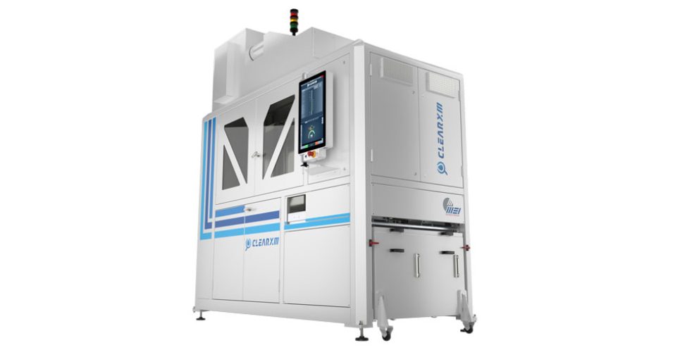 MEI ha desarrollado ClearXM, una solución compacta para la limpieza automática y el control cosmético de los lentes biselados. Este sistema integra un dispositivo de carga para inspeccionar lentes oftálmicas de cualquier forma y una sección de limpieza con múltiples cámaras consecutivas, con flujo de aire laminar para evitar contaminaciones. ClearXM optimiza el proceso de limpieza aplicando la presión y los movimientos adecuados para eliminar eficazmente el polvo y las partículas sin dañar las lentes. Es la única solución actualmente en el mercado que realiza de manera totalmente automática la limpieza y el control cosmético de lentes biseladas.