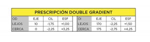La tecnología DOUBLE GRADIENT hace más preciso el cálculo del astigmatismo en toda la lente, por lo que ya se obtiene un claro beneficio con la prescripción clásica de lejos y adición. No obstante, si además el óptico nos facilita la refracción de lejos y la refracción de cerca, evaluadas de forma independiente, se consigue el máximo potencial de la tecnología y como consecuencia, el máximo rendimiento de las lentes.