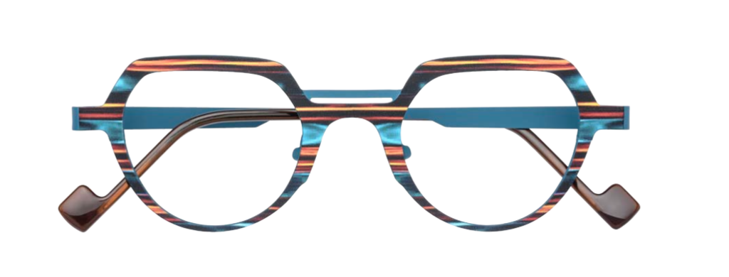 • Bold & Bright Blue (Modelo 2355-46): Hexagonal y audaz, con un mosaico en azul y camel que mezcla acetato y metal, perfecto para los que quieren destacar con sofisticación.