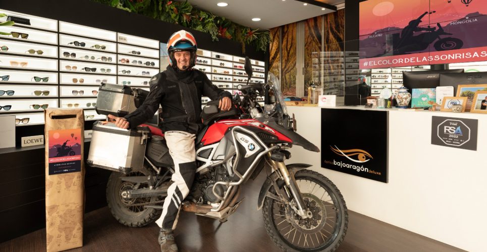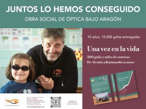 En fechas pasadas, Rita Balzi –Balziconzeta–, especialista en visual merchandising y escaparatismo para ópticas, montó un bello escaparate que tiene una historia muy bonita y solidaria detrás. El escaparate es de una de las ópticas Bajo Aragón (Teruel), un pequeño grupo gestionado desde hace 26 años por el óptico-optometrista Óscar Pérez García, junto a su mujer Carmen. Además de optometrista, Óscar es buen comunicador, apasionado amante de la naturaleza, de la fotografía, del deporte y, sobre todo, aventurero y escritor. De estas vivencias acaba de publicar su primer libro de un viaje que realizó en moto desde Alcañiz (Teruel) a Katmandú, donde repartió 500 gafas a gente que las necesitaba.