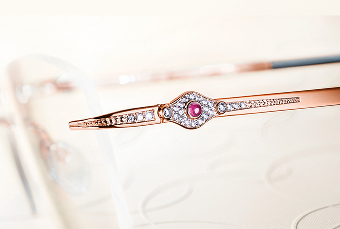Roland Keplinger: Sentí que, de alguna manera, algo le faltaba a nuestro trabajo. Representábamos el eyewear Premium pero necesitábamos poner la guinda al pastel. Decidimos entonces volar más alto y aplicar materiales suntuosos como oro o piedras preciosas a nuestras monturas. Mi equipo de diseño comenzó a elaborar el concepto hace dos años y medio, cuando nacieron los primeros bocetos.