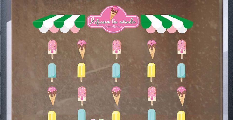 Recién estrenado el verano, las ópticas del grupo Farmaoptics lucen un original escaparate que transmite frescura y nos recuerda la llegada de las vacaciones. Con él, Farmaoptics ha querido decorar los escaparates de sus ópticas con una escena veraniega con originales elementos de múltiples combinaciones de color, para crear una atractiva composición con el objetivo de captar la atención de los consumidores, incrementar las ventas y conseguir diferenciarse de la competencia. La composición incorpora expositores que permiten dar protagonismo a diferentes modelos de gafas de sol.