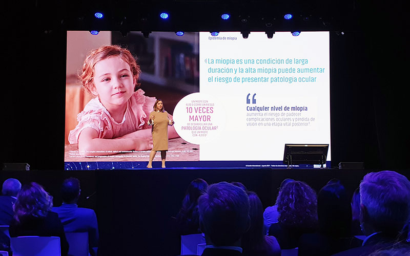 Por su parte Laura de Yñigo, directora de Instituto Varilux, habló sobre la pandemia de la miopía, que afecta en la actualidad al 33,9% de la población mundial y en 2050 llegará a prácticamente el 50%. Además, cualquier nivel de miopía aumenta los riesgos de patologías oculares como degeneración macular miópica, desprendimiento de retina, cataratas y glaucoma, entre otras. En este marco, presentó como primicia el próximo lanzamiento –el 4 de enero de 2022– de las Lentes StellestTM, que corrigen y ralentizan el avance de la miopía en un 67% de promedio.