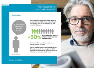 Estos resultados pueden ser consecuencia de la baja periodicidad con la que se revisan la vista, el 31,5% lo hace con una frecuencia mayor a 2 años, siendo un 10% los que afirman realizarse una revisión entre los 3 y 5 años. Casi un 20% solo lo hace cuando tiene algún problema (aumentando el porcentaje hasta el 30% en el caso de los menores de 45 años) e incluso un 7% afirma no habérsela revisado nunca. El 42% afirma revisarse la vista una vez al año como recomiendan los expertos en salud visual. Son las mujeres las que más lo hacen en un 44,5%, frente al 39,5% en el caso de los hombres.