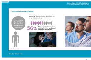 En cuanto a la edad, es a partir de los 45 años (39%) donde mayor es el número de encuestados que empezaron a notar los primeros síntomas de presbicia, sin embargo, un 13% tuvo síntomas antes de los 40. En relación con su entorno, el 56% de los encuestados reconoce tener amigos con presbicia, aunque casi un 34% lo desconoce.