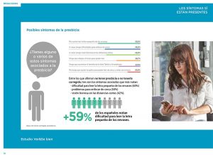 A pesar del alto conocimiento de la presbicia, tan solo uno de cada cuatro encuestados afirma tener presbicia y habérsela corregido. La mitad de los encuestadostiene dudas de si la tiene o no. Un 22% cree que sí pero no se la ha corregido, un 20% cree que no pero no está seguro y un 7% no lo sabe. Sin embargo, sí presentan síntomas, siendo los más comunes la dificultad para leer la letra pequeña de los envases (60%), problemas para enfocar de cerca (50%) y la visión borrosa en las distancias cortas (42%).