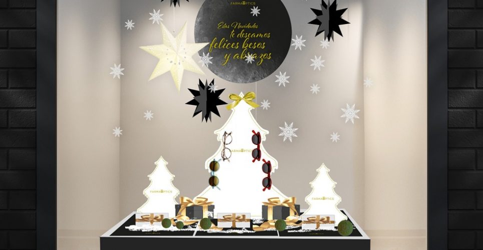 Farmaoptics ha diseñado un escaparate que recrea una pequeña historia de Navidad: una gran luna que ilumina y se refleja, estrellas que guían las noches frías y con nieve que nos traslada a escenas del pesebre; los típicos árboles de Navidad rodeados de regalos… La propuesta otorga personalidad propia a cada una de las ópticas y las convierte en espacios acogedores que promueven la profesionalidad y  transmiten el valor de los profesionales de la salud visual. Pero además también permite identificar y posicionar como grupo y reforzar la imagen corporativa de Farmaoptics.