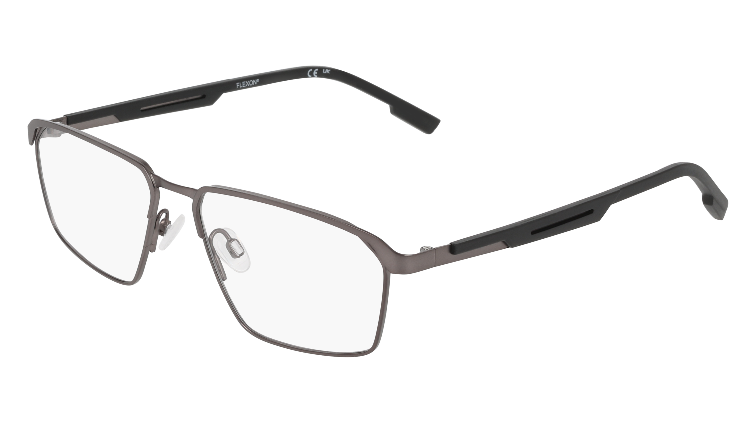 FLEXON E1157. Esta montura contemporánea ofrece un diseño elegante y moderno. Incorpora puente metálico con memoria Flexon, varillas de goma y plaquetas nasales ajustables para un estilo distintivo y comodidad diaria.