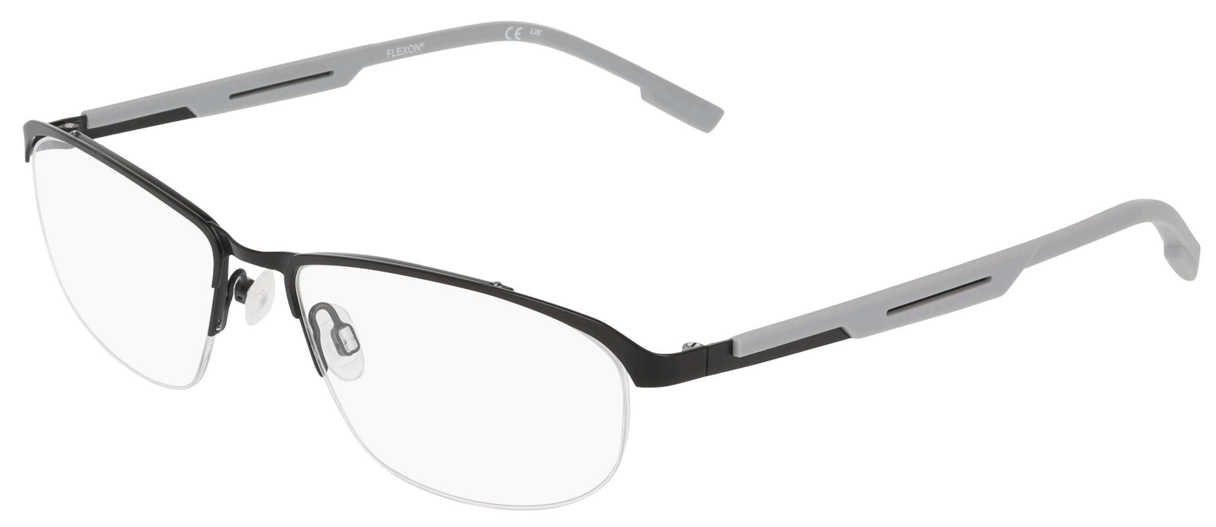FLEXON E1158. Este estilo óptico semi al aire, fácil de llevar, ofrece un aspecto ligero. El modelo está fabricado con barra superior de metal con memoria para garantizar la flexibilidad y la comodidad, y está reforzado con varillas de goma y plaquetas nasales ajustables para un ajuste personalizado.