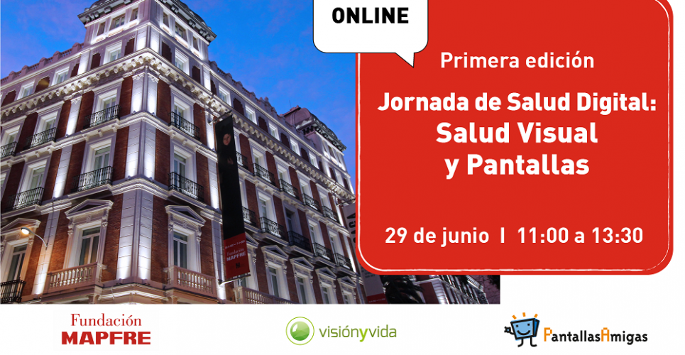 La “I Jornada de Salud Digital: Salud Visual y Pantallas” tendrá lugar el martes 29 de junio de 11:00 a 13:30h de manera virtual. Se trata de un evento coorganizado por la Fundación MAPFRE, PantallasAmigas y Visión y Vida que busca concienciar sobre la importancia de cuidar la visión de jóvenes y adolescentes y dar recomendaciones frente al uso de pantallas.