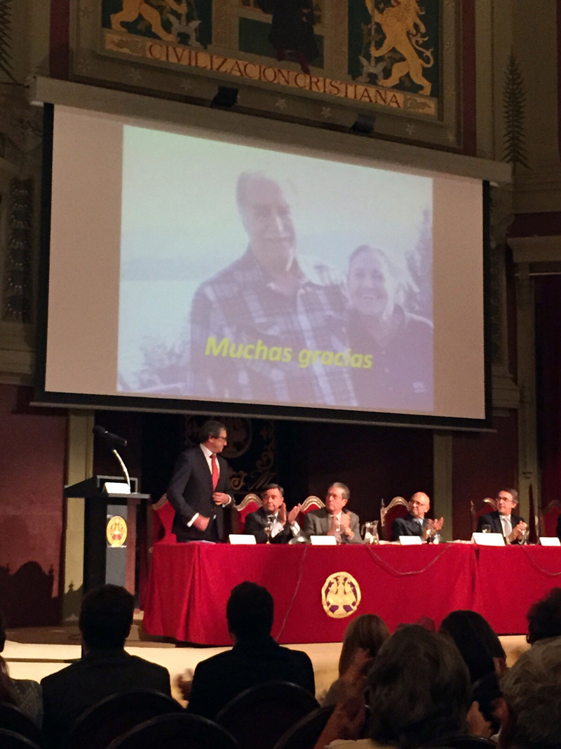 El momento más emotivo del acto llegó con la intervención de Ernesto Marco Carmena, hijo del homenajeado, farmacéutico-óptico y reconocido profesional del que nos enorgullecemos tener como amigo. En su intervención agradeció la presencia de todos los asistentes y participantes en el acto, así como las facilidades dadas por el Ateneo de Madrid para este homenaje. Además de recordar anécdotas y recuerdos de su padre, Ernesto Marco hijo destacó la calidad humana y firmeza de ideas de su progenitor, las visitas a su gabinete y cómo le hizo interesarse por la Óptica, en lo que hoy es especialista (Marco-Óptico atiende a buena parte de las necesidades visuales y auditivas de Alcorcón, Madrid). “Aunque se sentía aragonés de pro y era madrileño de nacimiento, Ávila era su segunda casa; sentía adoración por Santa Teresa y por su finca La Yerba, donde vivimos su vida personal y profesional y en la que seguimos recordando muchos y muy buenos momentos”, comentó Ernesto hijo. También habló de la faceta que le unió a su padre: la Óptica y la Optometría, además de la Farmacia. “Me decía –añadió– ‘haces Farmacia y óptica o sientas plaza en la Guardia Civil’. Me convenció, me fui a Santiago a
