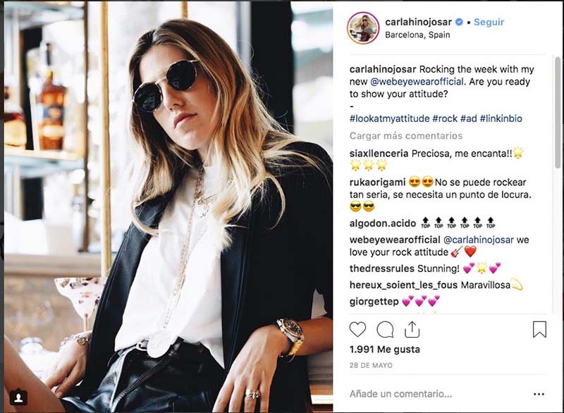 La influencer Carla Hinojosa luce gafas WEB