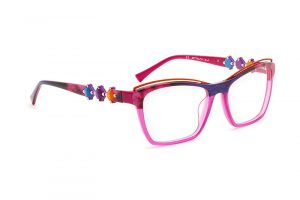 La propuesta LM3299 es sinuosa y cautivadora: un estilo clásico creado con un frente ancho y redondeado, adornado por el doble círculo en contraste. La secuencia de triángulos que decoran las varillas recuerdan a las tonalidades dominantes de los acetatos. Sus circulos pintados en colores vivos crean una perfecta armonía que no pasa desapercibida.