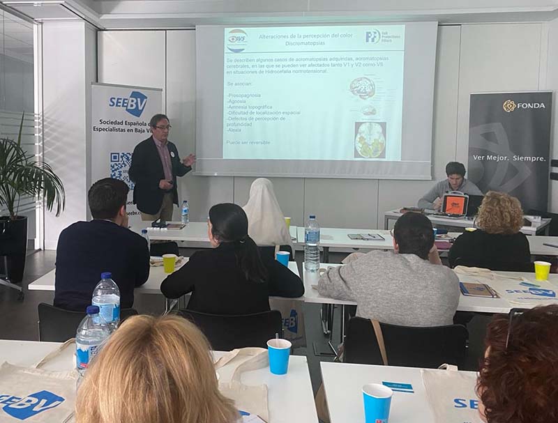 El pasado día 16 de marzo la SEEBV (Sociedad Española de Especialistas en Baja Visión) organizó un curso sobre “Atípicos en Baja Visión”. En él, se habló de prótesis oculares (Amarena Delgado), lentes especiales (Ricardo Roca), acromatopsias y discromatopsias (David Guzmán y Agostina Ormeño). La jornada tuvo gran éxito de asistentes, unos expertos y otros noveles.