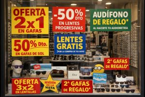 Si hay algo que todos hemos visto mil veces en nuestro sector son los escaparates llenos de promociones. 2×1 en progresivos, segunda gafa gratis, descuentos del 40 % o campañas que se encadenan unas con otras durante todo el año. Las promociones forman parte del retail y, bien utilizadas, pueden ser una herramienta muy eficaz para dinamizar las ventas. No hay nada de malo en utilizarlas. De hecho, en determinados momentos pueden ayudar a atraer tráfico a la óptica, activar la rotación de producto o estimular decisiones de compra que el cliente estaba aplazando. El problema aparece cuando dejan de ser una acción puntual y pasan a convertirse en la estrategia principal del negocio. Ahí es donde empiezan las dificultades.