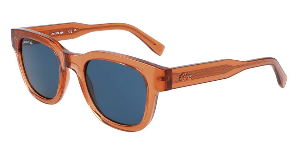 Con su frente de suave forma rectangular, la montura de inyectado transparente de las nuevas gafas de sol L.12.12 Trim se caracteriza por el logotipo de petit piqué de los terminales, que se repite en la placa metálica presente en la parte interior de las varillas. El núcleo metálico visible a través de las varillas transparentes también lleva el motivo de piqué, a lo que se suma la versión tono sobre tono del logotipo del cocodrilo perfilado en metal, otro elemento distintivo que hace referencia a la identidad de la marca. El modelo se presenta en Beige en la campaña publicitaria, pero también está disponible en Grey, Brick, Khaki y Brown.
