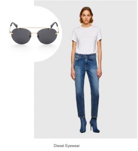 El básico de vaqueros, camiseta blanca y cazadora de cuero nunca pasa de moda y las gafas de sol estilo aviador tampoco, por lo que la combinación de ambos es un acierto seguro. Diesel Eyewear sigue apostando por este modelo de gafas dando un toque roquero y casual al look.