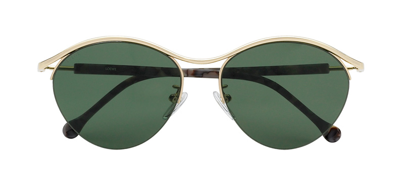 En los nuevos modelos de gafas de sol Loewe, la varilla se interpreta en múltiples versiones: sea en un formato único que recorre todo el frontal o en doble puente, tendencia imperante en 2016.
