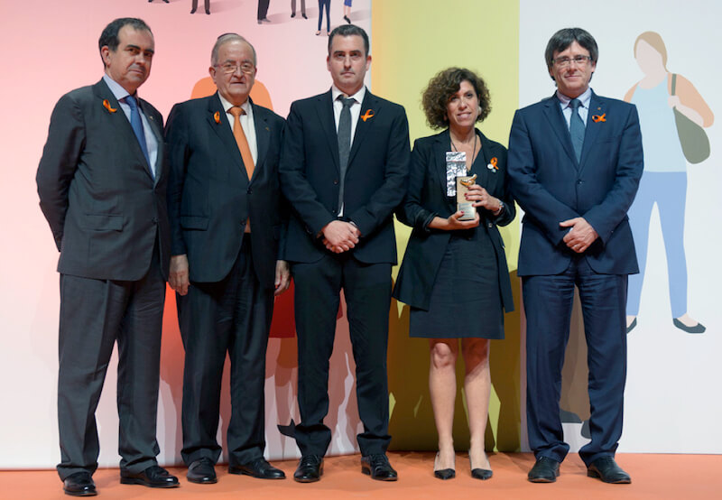 En la imagen vemos a los hermanos Montse y Joan Pera con el presidente de la Generalitat, Carles Puigdemont, y directivos de PIMEC.