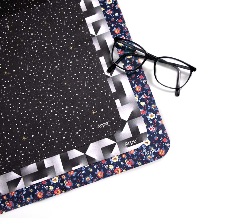 Aunque la idea principal del Grupo era centrarse solo en fundas, Arpe propuso crear unas gamuzas a juego también para venta individual. Finalmente, los cinco diseños hechos totalmente a medida visten ahora los modelos de funda universal y gamuzas 30x30cm de Manufacturas Arpe. Productos diseñados con las medidas y materiales más óptimos para cumplir con los requisitos de sostenibilidad. Producidos internamente y localmente a km0, son reciclados, multifunción y libres de sustancias tóxicas. Hechos de una microfibra suave y reciclada, ocupan muy poco espacio y tienen la doble función de proteger y limpiar. Además, están impresos digitalmente con tintas OEKO-TEX, un pasaporte ecológico para fabricantes.