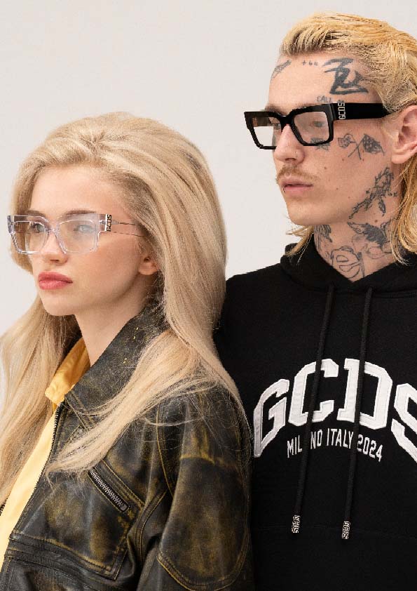 La asociación entre Marcolin y GCDS comenzó en 2019, cuando la marca fundada en 2015 gracias a la visión de los hermanos Giuliano y Giordano Calza decidió entrar en el mundo de las gafas, ampliando así su gama de accesorios.