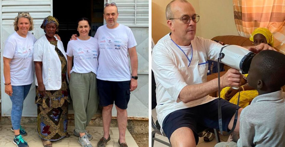Florent Carrière, optico-optometrista y CEO de MIOPTICO junto a Esther Sánchez, Directora Comercial de Neolens Iberia, se han desplazado hasta Senegal junto a la ONG para poder realizar consultas gratuitas así como entregar las nuevas gafas adaptadas a las poblaciones más vulnerables y niños.