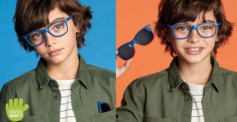 Las gafas indestructibles Nano Clip son las protagonistas, con las que los niños estarán preparados para cualquier actividad de su día a día de forma rápida y cómoda. Podrán utilizar una sola gafa para estar en el colegio, en casa y realizar actividades al aire libre. En tan solo un “clip”, podrán hacer de sus gafas Nano Indestructible unas gafas de sol, protegiéndoles de las nocivas radiaciones UVA/UVB gracias a sus lentes antirreflejantes, Blue Block y polarizadas .