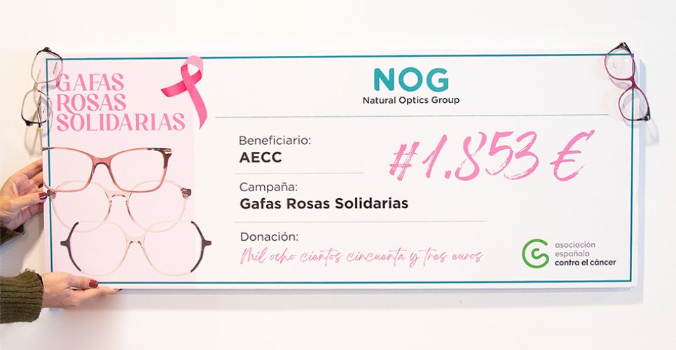 Natural Optics Group (NOG) ha donado 1.853€ a la Asociación Española Contra el Cáncer (AECC). Esta recaudación tiene como destino ayudar en la investigación contra el cáncer de mama.