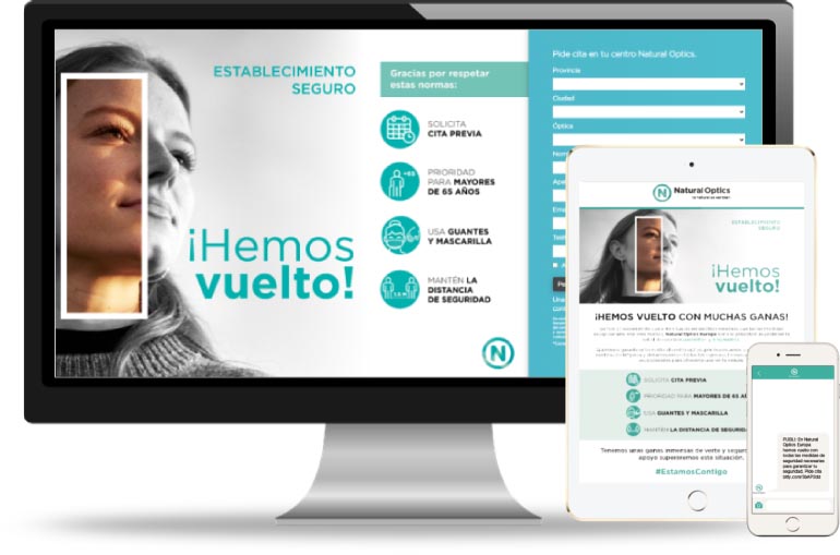 Mediante una comunicación directa efectuada a través de e-mail y SMS, desde Natural Optics contactan con miles de clientes finales y les redirigen a su zona específica de petición de citas que visitaron y todavía están visitando otros cientos de usuarios, espacio en el que se están confirmando citas previas de forma rápida y sencilla.
