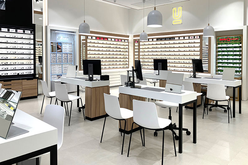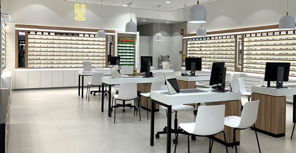 La remodelación del centro ha sido realizada siguiendo la identidad de la marca, con un diseño que prioriza la comodidad del cliente con una amplia exposición de productos. Además del característico blanco, que refleja la claridad y la excelencia, se han introducido nuevos materiales con acabados naturales, más actuales y acordes con la identidad de Óptica & Audiología Universitaria.