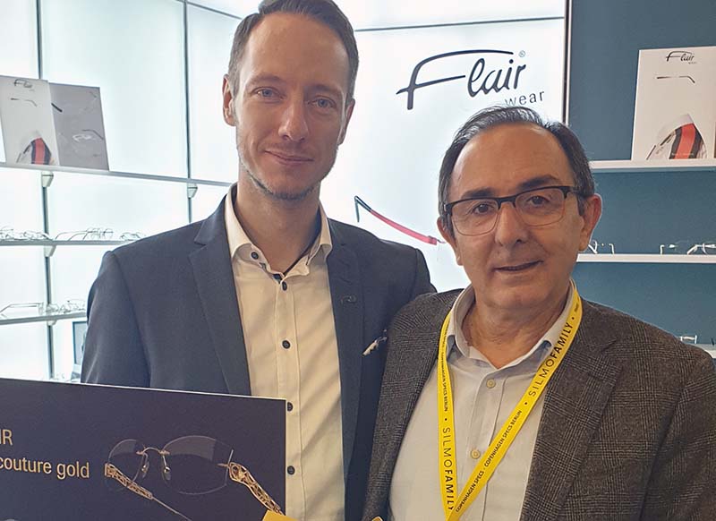 En la foto de la derecha vemos a Sven Reiß, alma mater de FLAIR y gran amigo de Lookvision, con el director de la revista, Julio Rozas, en el stand de la firma alemana en una de las ferias internacionales de óptica a las que asiste.