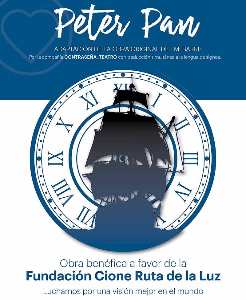 Venta de entradas en: https://elteatroreinavictoria.com/peter-pan-a-favor-de-la-fundacion-cione-ruta-de-la-luz-en-el-teatro-reina-victoria/