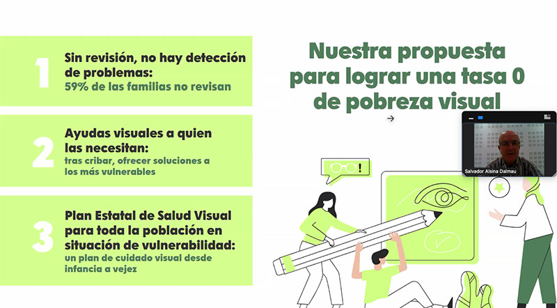 Salvador Alsina, presidente de la entidad, ha desgranado en esta rueda de prensa virtual algunos de los datos más destacados del estudio, realizado gracias al apoyo de Correos Express, filial de paquetería urgente del Grupo Correos, que supone unaactualización del informe presentado en 2022, en el que por primera vez se midió la prevalencia de “pobreza visual” en el país.