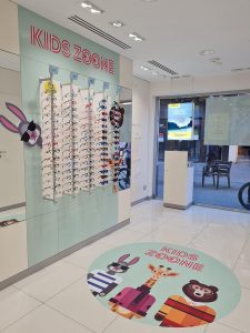 Con el objetivo de crear un entorno cercano, donde los niños se sientan cómodos y a gusto, Óptica & Audiología Universitaria ha creado Kids zOOne, que irá adaptando a sus diferentes centros. Se trata de un espacio donde los niños podrán jugar y donde se expondrán las gafas infantiles. El espacio cuenta con varios personajes del mundo animal que llevan gafas de vista o de sol. Por ello el nombre de Kids zOOne. Además del símil con la palabra “zoo”, las dos OO también representan los cristales de unas gafas.