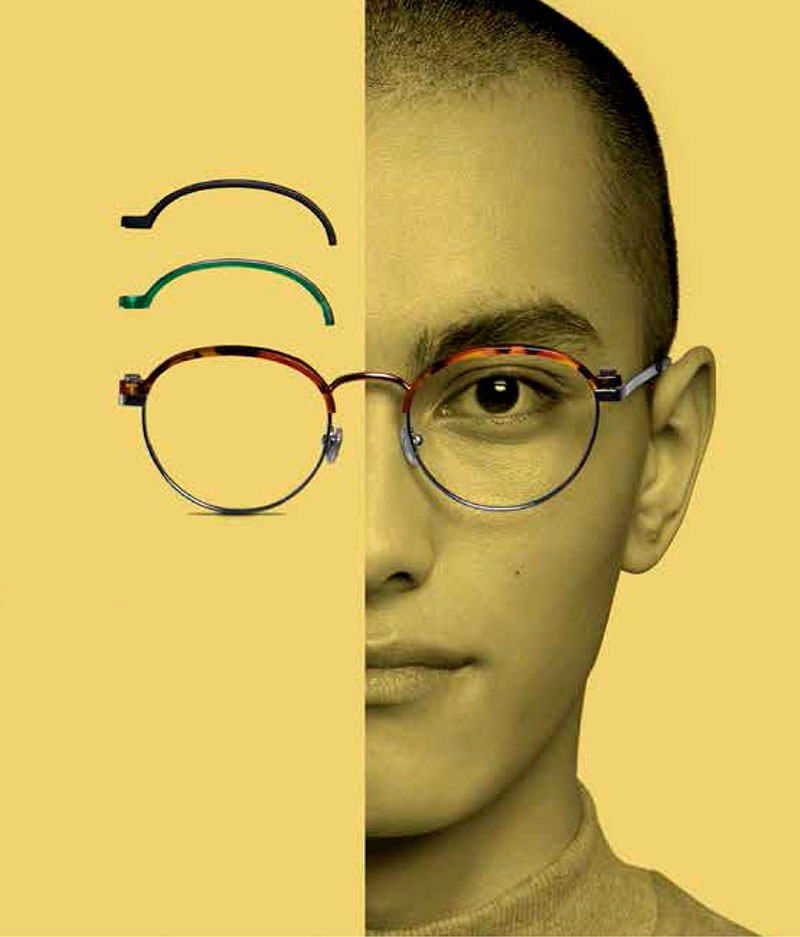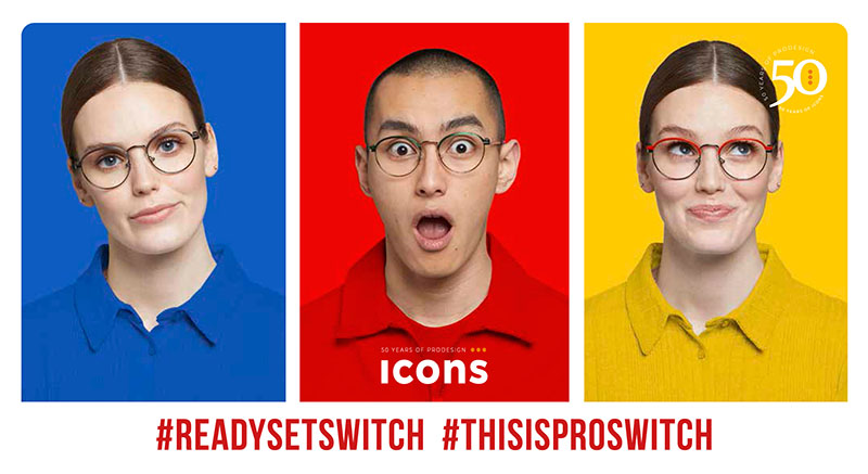 Proswitch se presenta como una montura metálica clásica con tres partes superiores de acetato diferentes e intercambiables. La montura se presenta en cuatro estilos separados en colores metálicos: oro, plata y bronce, algunos brillantes y otros mates. Los tornillos pequeños y minimalistas se aplican fácilmente a mano, lo que permite cambiar las diferentes partes superiores de forma rápida y sencilla, sin necesidad de herramientas.
