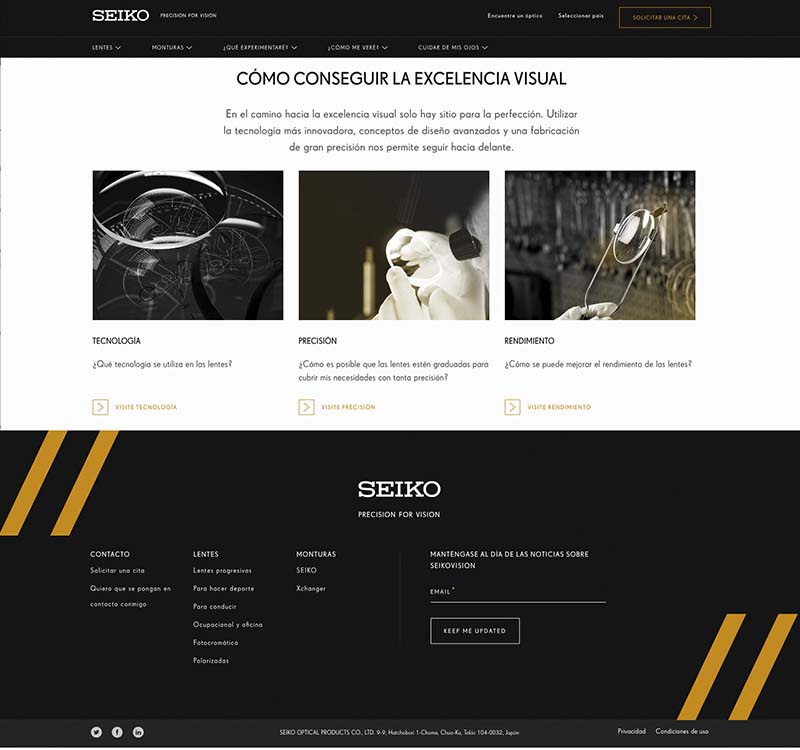 La nueva página, www.seikovision.com/es, responde a los cambios globales en el diseño corporativo de la marca y aspira a ampliar el conocimiento de los visitantes en tecnología óptica y productos oftálmicos.