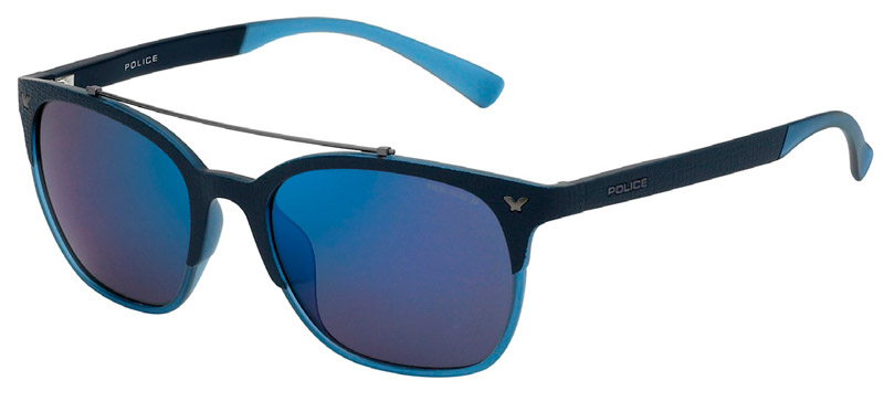 simbólicos modelos panthos de Police, que ahora se tornan más actuales que nunca gracias a la innovadora Duo Lens; color humo en toda la base y azul claro en la luneta superior espejada.