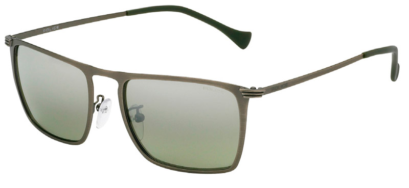 La montura rectilínea tono sobre tono GAME 5 SPL161 col. J24B combina una base clara mate con colores más oscuros. Una particular elaboración 3D crea el efecto de una trama de lino grabada sobre el plástico. Las lentes, espejadas o matizadas, pueden ser del mismo color que la montura o en contraste. El estilo inconfundible de Police está presente en los detalles de metal, como el perno con forma de águila en el frente y el doble puente.