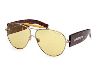 El modelo aviador de Moncler se presenta en esta ocasión como un diseño que mezcla lo sofisticado con lo retro, gracias a su frente de metal, lentes amarillas y varillas gruesas.