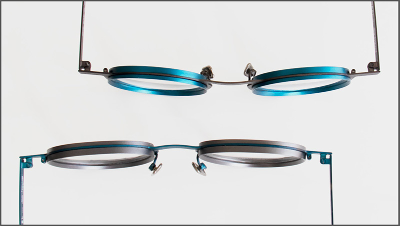 La idea de este matrimonio entre la arquitectura y las gafas es, sobre todo, crear puentes y destacar las especificidades de cada una. Estas dos profesiones tienen mucho en común, como demuestran las dos nuevas monturas altamente estructuradas, un diseño redondo (90034C) y una forma pantos (90035C), gracias a un círculo de aluminio insertado perfectamente en la estructura de acero inoxidable. No se deja nada al azar, el contraste de colores y materiales hace que las nuevas montura sean un producto de primera calidad.