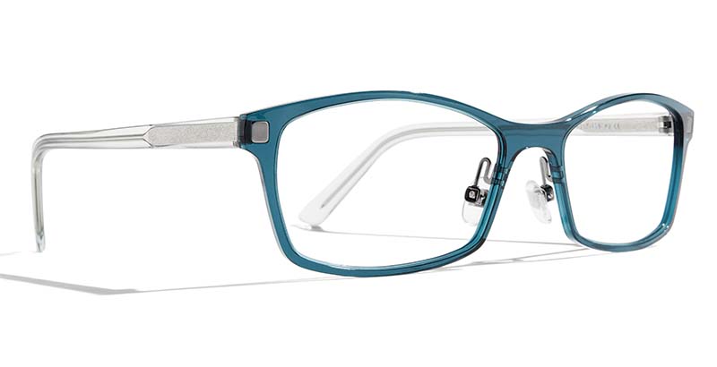 es y transparentes, van cortados en fino CXT y se presentan en contraste con las varillas de acetato, en distinto color. Este modelo está disponible en dos formas distintas, en 6 variantes de color cada una.